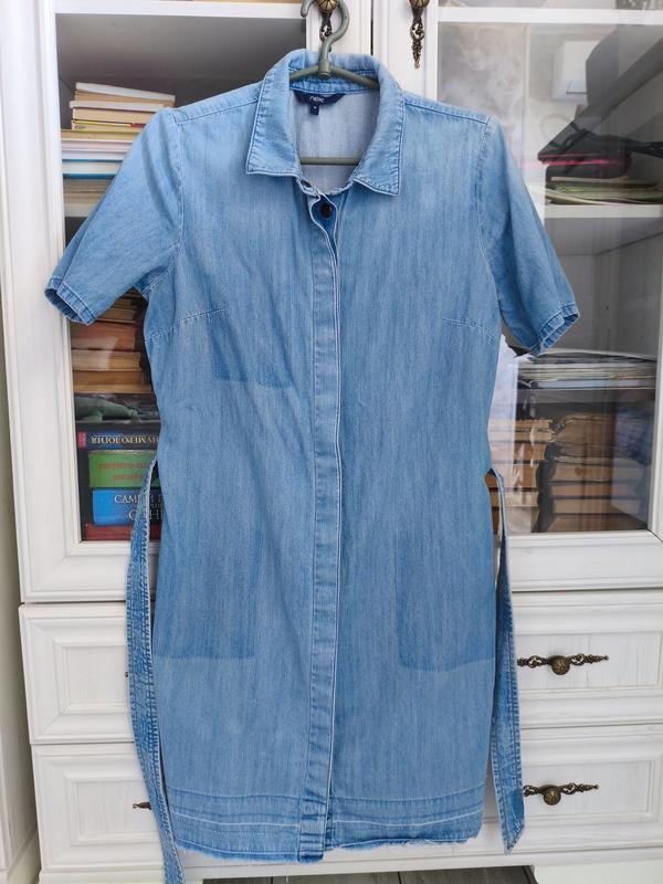 Джинсовое платье халат, платье коттон, размер м