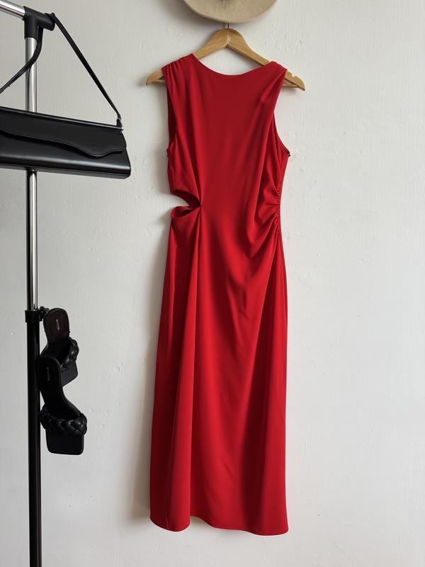 БЕЗПЕЧНОЮ , НАКЛАДНИМ, ПІСЛЯПЛАТОЮ НЕ ПРАЦЮЮ❌ Перш ніж надсилати замовлення-всі умови співпраці викладені в описі про мене в профілі 🔥 червона сукня З💙ра Розмір М Стан сток не секонд Груди 43-48 талія 35-40 бедра 50 довжина 131 Поліестер еластан Тканина струмує по тілу