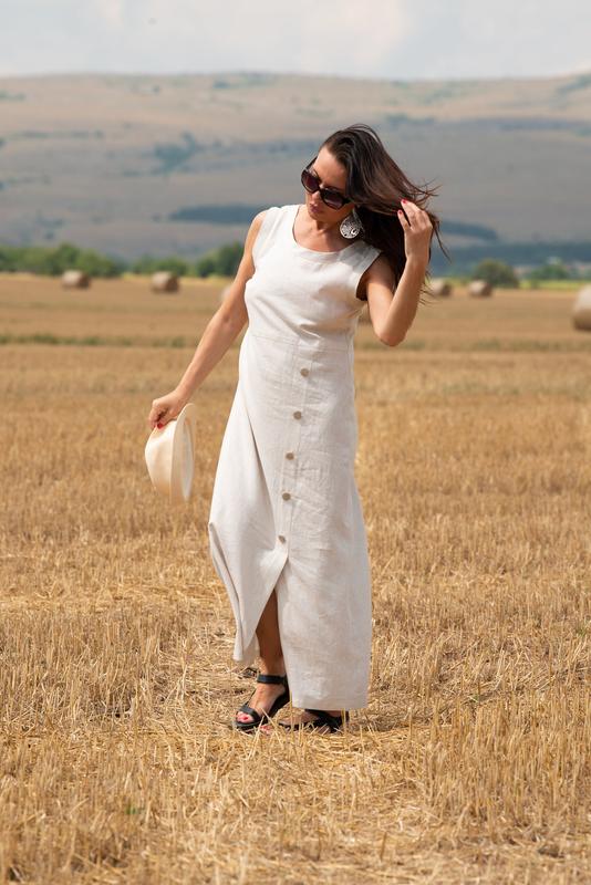 легкое невесомое платье из ткани с добавлением льна (бирки со составом не было) размер М, идет на М Пог 48 талия (по линии отреза )44 бедра свободно длина 130 приобреталось новое с бврицей, одевалось 1 раз в час
