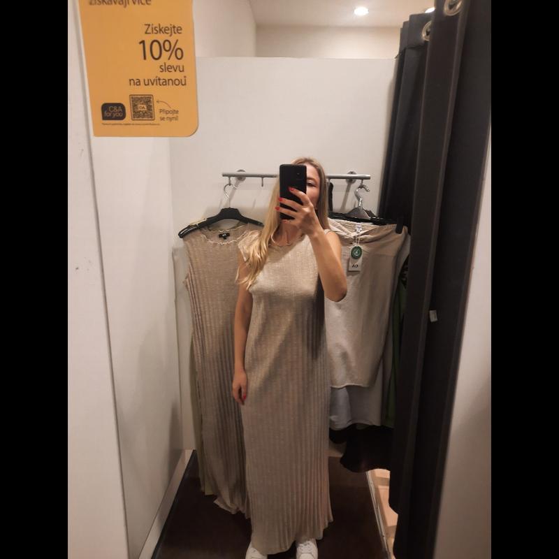 Платье миди в рубчик, идет свободный крой, бежевый цвет, новинка лета, все вещи приобретены заграном.