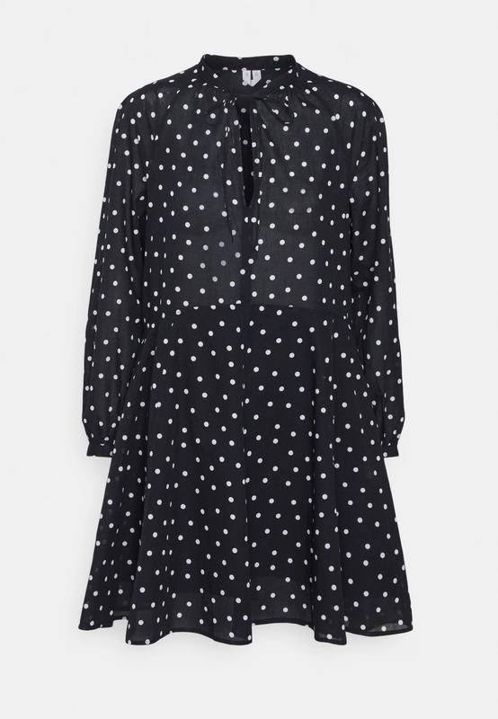 Легкое хлопковое платье с воротником стойкой, которое украшено завязками., длинными рукавами на пуговицах и юбкой с подкладкой ПОГ 44 см Длина по спине без воротника 92 см Бумажная бирка отсутствует