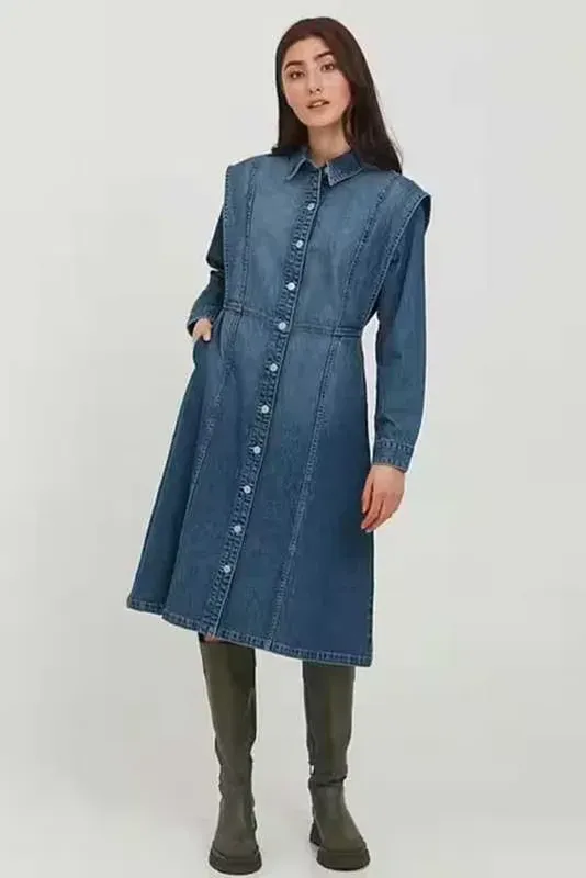 Очень классное, стильное и практичное платье датского бренда b.young. Джинсовое платье с выступающие рукавами, длинными рукавами, приталенное, планка на пуговицах, длина миди, многочисленные декоративные швы, по бокам есть карманы. Размер 38 /М, может подойти на L Пол-обхват груди 50 см. Пол-обхват талии 42 см. Рукав от горловины 72 см, от плеча 62 см., низ рукава 47-48 см. Пол-обхват бедер 58-60 см. Длина по спине от горловины 109 см. Длина бокового шва с под рукава 86см.