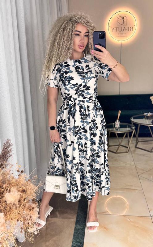 ™️ Одежда направления от ВЫРОБНИКА ✅ Все Трендовые НОВИНКИ 👌После платья с предпл. 150 грн 📌Подписывайтесь Мод 038 Тканина: софт Размеры: 42-44,46-48,50-52 Сезон: весна/лето Женское платье миди с цветочным принтом Модель выполнена в элегантном стиле: закрытый верх с круглым вырезом, короткие рукава и приталенный силуэт с акцентом на талии. Юбка с мягкими складками создает легкий объем и красиво струится при ходьбе. Размеры 42–44 • Грудь: 90 см • Рукав: 30 см • Длина: 118 см • Талия: 60–70 см Размеры 46-48 • Грудь: 98 см • Рукав: 31 см • Длина: 119 см • Талия: 66–76 см Размеры 50-52 • Грудь: 106 см • Рукав: 32 см • Длина: 120 см • Талия: 72–82 см