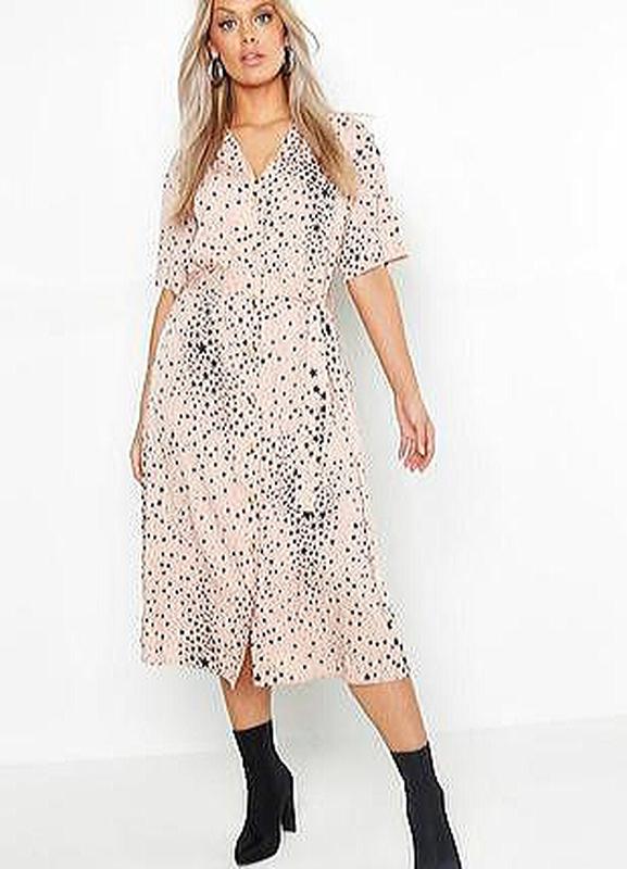 🍒20uk пудровое платье в принт звездочки Boohoo длина от плеча 122 см/до талии 45 см полуобхват груди 62 см полу охват талии 62 см полуобхват бедер 70 см 🍒100% полиэстер 🍒состояние новой вещи #989#