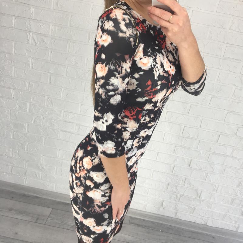Красивое платье в розах.Плотный утягивающий трикотаж ,полностью по фигуре,на плечах золотистые молнии.