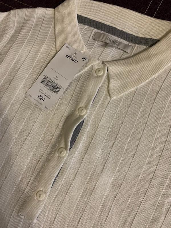 Кофта-рубашка белого цвета, размер L. Состав: 50% вискозы и 50% акрила.