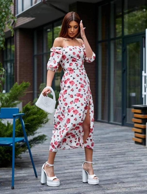 Платье софт в цветочном принте с разрезом на ноге и шнуровкой на спине
