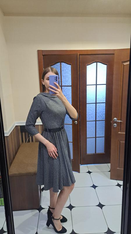 Сукня міді сірого кольору, одягалась тільки 1 раз. Сукня для осінньої та весняної пори року. Склад:97% поліестер, 3% нейлону. Розмір 36 (S)