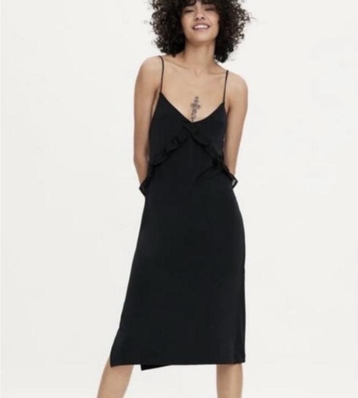 Сукня від Zara чорного кольору, розмір с-м стан ідеальний. По бокам два розрізи, легеньке вільне