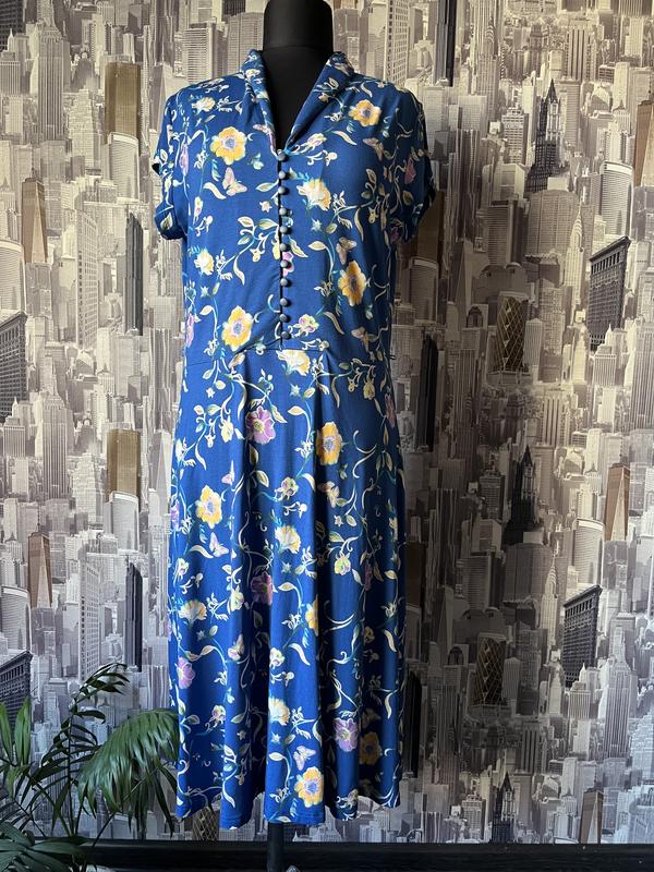 Плаття міді , гарного насиченого синього кольору Розмір Л Тканина віскоза Чудово сідає по фігурі Верх на ґудзиках