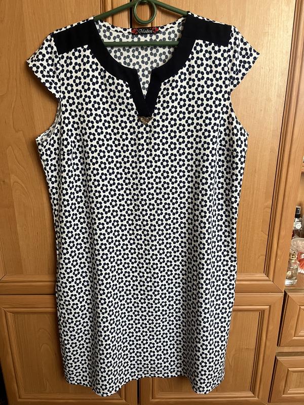 Жіноча літня сукня у відмінному стані, без жодних нюансів. Розмір приблизно наш 48, дуже зручна та комфортна, підійде як для повсякденного носіння, так і на свята. Заміри: ширина під руками 52, бедра-55, довжина-91, тканина трохи тягнеться,