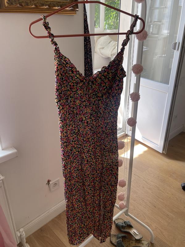 Длинное платье сарафан на бретелях с вырезом цветочный принт