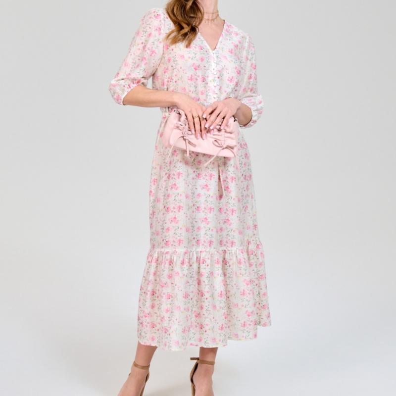 Нежное цветочное платье, так как оно хорошо просвечивалось, то была сделана подкладка Брала себе для крестин, но нашла чисто белое Новое, не носилось, с биркой и уже подкладкой Грудь лучше 100 см