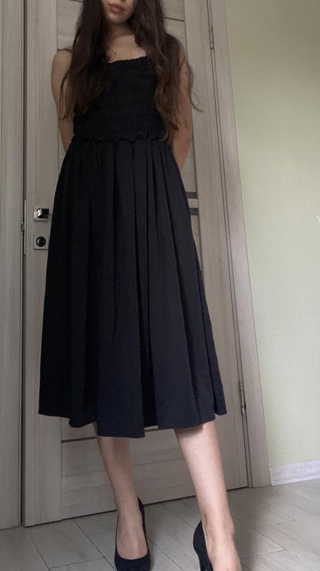 Чорна сукня, підходить на розміри S-M, мій зріст 170, матеріал - атлас