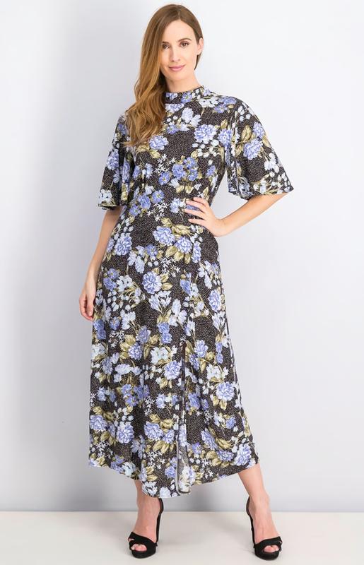 & Хорошее платье в цветочный принт Miss Selfrige, 100% вискоза & Стан - идеальный & Размер 12, замеры: ПО плечу 42см ПО груди 49см ПО талии 40см ПО в районі бедер (умовно) 60см ПО низу 78см Длина рукава 30см Длина платья 120см, от плеча до талии 40см, разрез с переда 49см (платье в районе разреза дольше на 9см)