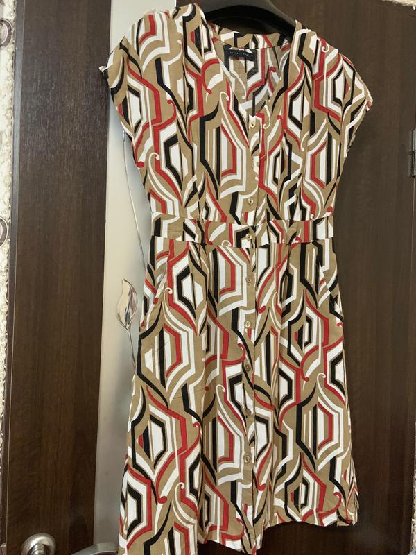 Дуже красиве та легеньке платя-халат. Красивий колір вживу (2-фото), інтересного принту. Натуральна віскоза, але дуже тонка, на жарке літо, підкладка тільки внизу плаття! Під пахвами-45см, талія-38-39см, довжина-92см. Не створюйте автоматичних замовлень без мене, всі питання до продажу!