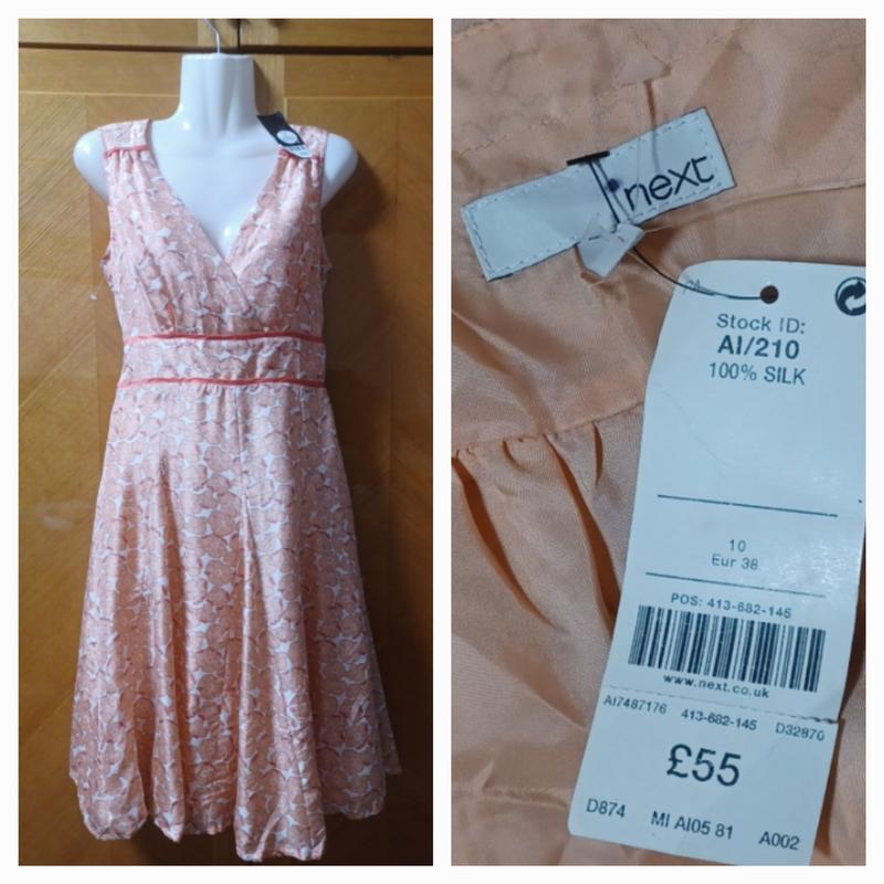 Невероятно красивое платье с бумажной бирочкой от бренда Next. Основной материал 100% шелк, легкий и приятный на ощупь. В середине подкладка 100% полиэстер, шелковистый на ощупь. На запах. На бирочке размер 10 eur 38... ВНИМАЙТЕ ЧИСТИРАЙТЕ ВЫМЕРЫ. Замеры делали с середины Полуобхват груди 50 см, по талии 40 см. Ширина в плечах позаду 34 см . Пройма рукава полуобхват 20 см. Высота по спине от плеча у горловины 100 см, от подмышек 80 см ( из них до талии 19 см),по переду от плеча у горловины 100 см (из них до талии 40см), по переду по середине 76 см. Застегивается на молнию по боковому шву. Камера не совсем верна передает цвета, ближе всего 7 фото. ❗️НАЛОЖЕННОГО ПЛАТЕЖА- ПРЕДОПЛАТЫ, БЕСПЕЧНОЙ ОПЛАТЫ, ПОВЕРННОСТЬ И ОБМЕНА НЕМЕТ. ❗️Отправляем после полной платы на карточку Приватбанка. ❗️Доставка Новой или Укр по почте за средства покупателя.Можная оформить доставку здесь, с указкой,НА КАРТКУ ПРОДАВЦУ, ❗️Карточку просить только в том случае, когда уверены, что покупаете товар. *11 061*