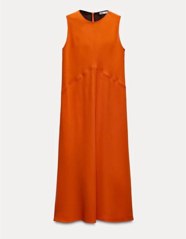 Сукня Zara помаранчева Нова з біркою Розмір L Склад 60 віскоза 40 ліоцел Довжина 135, плечі 32, пройма 25, пог 44 тягнеться 50, пот 45 тягнеться 55, поб 52 тягнеться 70, довжина до талії 45 Є кишені