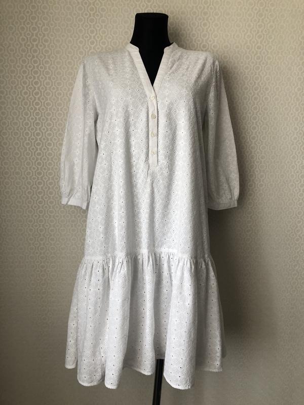 Прошва! Белое нарядное платье от Esprit, размер 36 eur. Состав: 100% хлопок. На подкладке. Не просвечивается! С оборкой внизу. Воротник стойка с V-образным вырезом и пуговицами до линии талии. Длинный рукав с узким манжетом на одну пуговицу. Без карманов. Дефектов и нюансов нет. Состояние идеальное. Замеры изделия в не растянутом виде, см: плечи 39, подмышки (примерно равно ПОГ) 51,5, ПОТ 53,5, ПОБ (Замер делаю на расстоянии 65 см от плечевого шва, если вещь короче, то по краю изделия) 60,5, длина 97,5, длина рукава 44. Объёмы манекена, см : плечи 39, ОГ 87, ОТ 63 ОБ 90 Отправляю Новой почтой либо наложенным платежом (при условии оплаты доставки в оба конца), либо по предоплате на карту Приват, Укрпочтой по предоплате, Meest по предоплате Продаю много фирменных вещей Airfield, Strenesse, Gerry Weber, Steilmann, Brax, Bonita, Basler, Frank Walder, Apanage, Olsen, Ulla Popken, Gardeur, Monari, Rabe, Guess, Hauber, Marks&Spencer, Concept K. Много новых вещей (с этикеткой) - можно на подарок. Смотрите другие мои объявления. Спасибо, что заглянули :-)