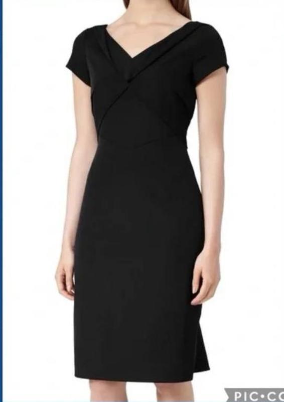 Красивого кроя миди платье Reiss, модель Agustini Трикотажна плотна еластична тканина Платье полностью на чехле Застежка на длинную молнию сзади Длина 94 см плечи 44 см длина рукава 13 см ПОГ 52 см ПОТ 44 см ПОБ 54 см