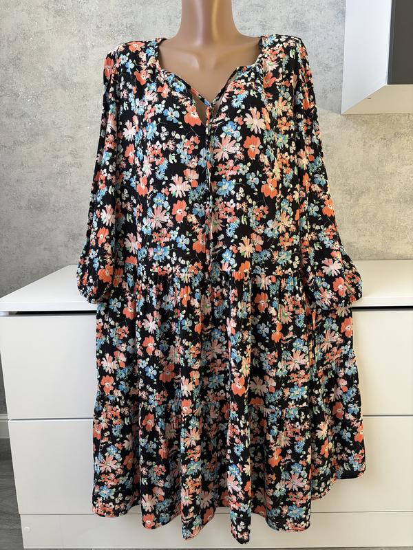 Вільна ярусна сукня, ніжний, гарний принт Пог 61 ПОТ 62 Бедра вільні Довжина від горловини 95 Рукав 3/4 48 Плечі 40 Тканина жатка, трохи тягнеться