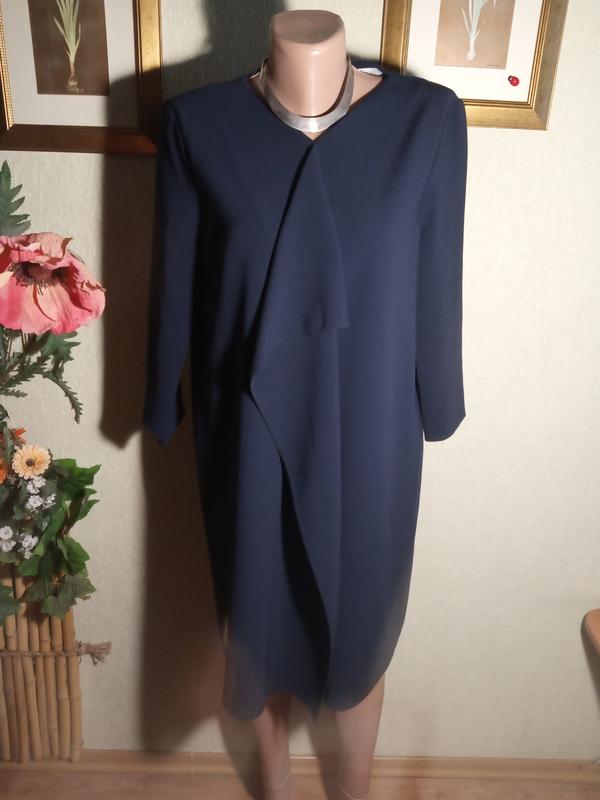 Пог 49, пот 51 пост 55, длина рукава 46 см., ширина плеч 41 см., длина платья по центру спинки 90 см. Без подкладки, без карманов. Есть разрез вместо шлицы. На последнем фото подпорился шов в конце рукавов. ЭТИКОЕТОК ЗІ СКЛАДОМ И С РАЗМЕРОМ НЕТ! Это мое мнение.