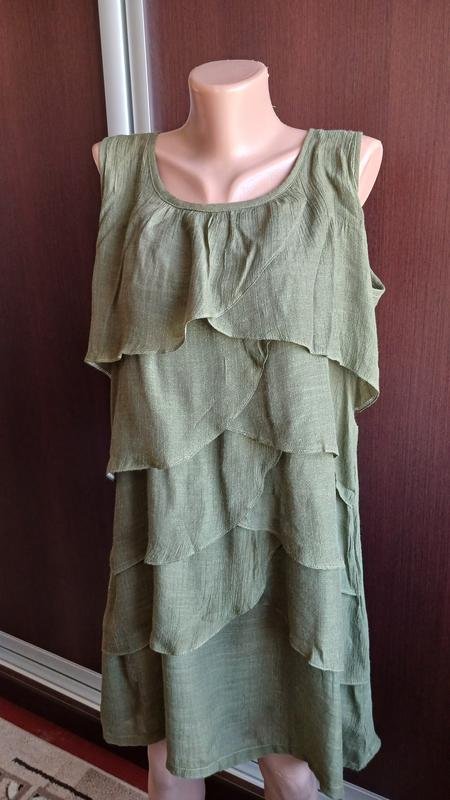 Платье цвета хаки, источаемый крой, с натуральным составом, то, что надо на лето.По замерам:ПОГ 54, длина 92, подойдут на размер S,M.