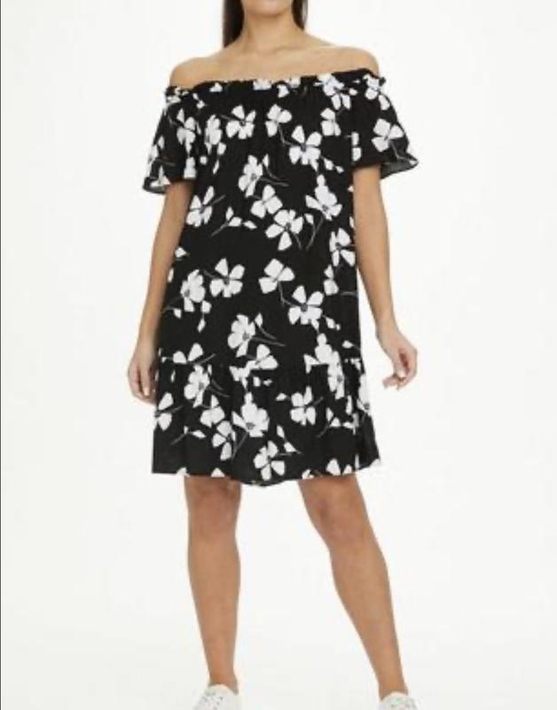 Чорно біла сукня в квіти фірми Papaya у розмірі 14.Довжина 76 см,в грудях 61 см