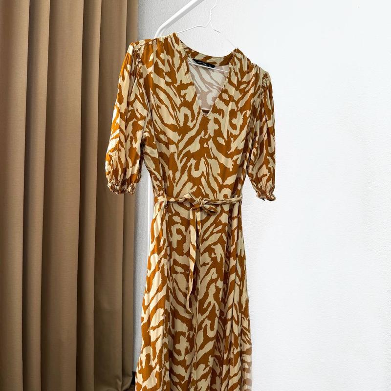 Плечі 40 Поб грудей 57 Поб талії 43 Поб стегон 58 Рукав 32 Ширина низ 90 Довжина 114 Легенька сукня на весну. Знизу з обох боків невеликі розрізи. В комплекті є пояс.