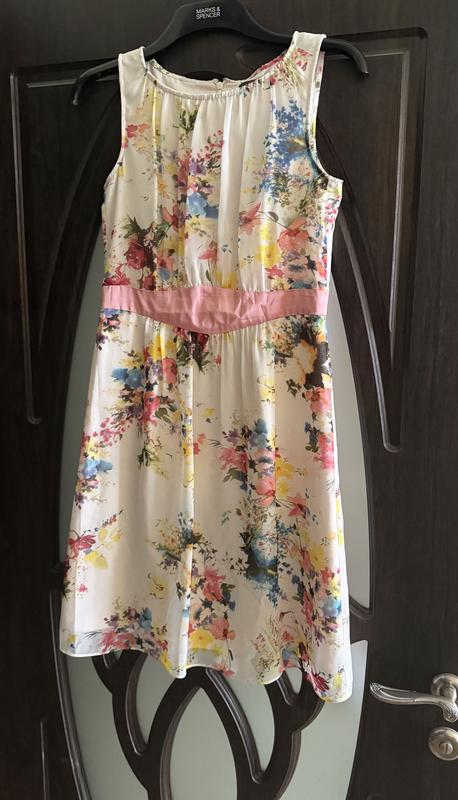 Гарне шифонове, платячко, на літо, з гарним принтом, квітами, можна одягати як на вихід так, і на кожен день. Дуже зручне, на кожен день, легке, не парить. Красиво виглядає на фігурі. Брендовоі фірми: Esprit. Заміри: довжина від плеча до низу 95 см. В полу, обхваті, в грудях 47 см. на весь обхват 94см. Талія в полу, 37 см. на весь обхват 74 см. Стегна, в полу, обхват 51 см. на весь обхват 102 см. Низ сукні, в полу, обхваті 67 см. на весь обхват 134 см. Склад: з верху склад 100% шифон, підкладка 100% полістер.