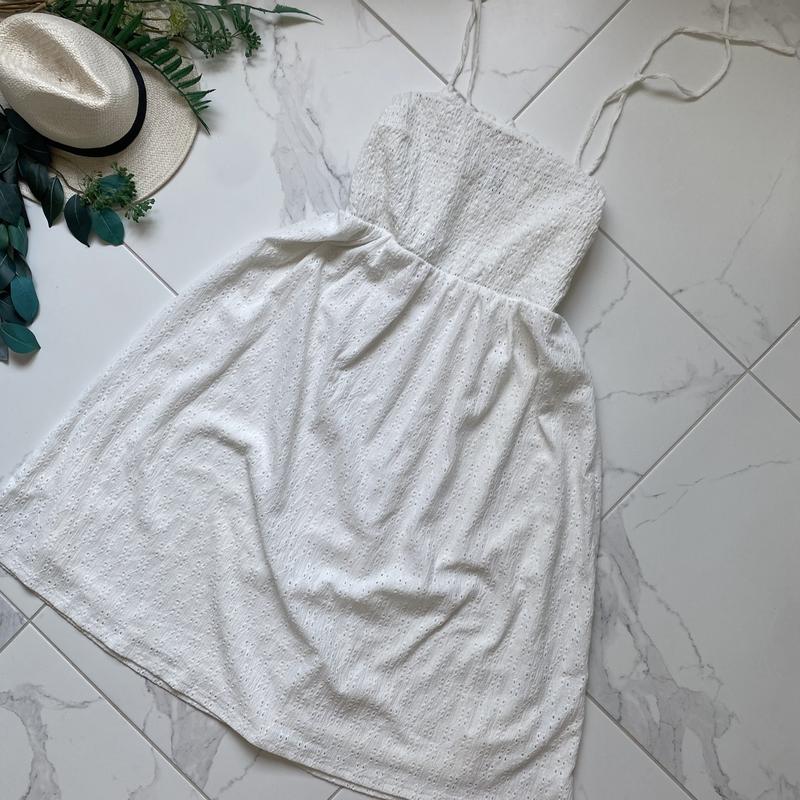 Сукня біла міді стан ідеальний, поліестер, прошва, є підклад, верх рез, тягнеться, Н* р хл ххл -довжина 113 регул. -нОг 50-66 рез. -нОт 44-59 рез. -нОб вільно ФОТО НА ТІЛІ НЕМАЄ