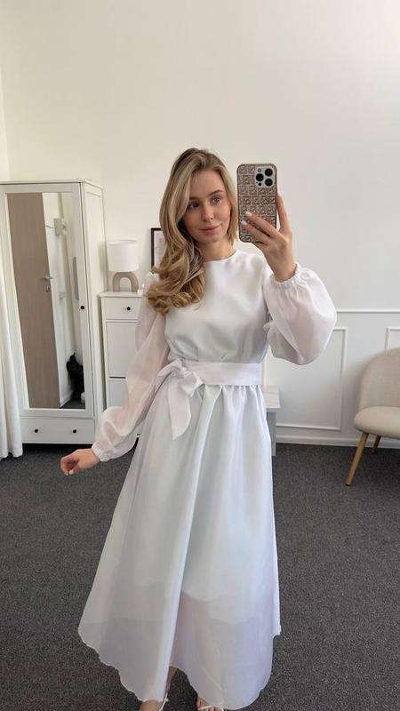 Сукня 3010 Розміри 42-46 Тканина органза, підкладка. Довжина 125см У р 42-46 обхват грудей 94см, у р 48-52 ОГ 110см Талія на резинці.