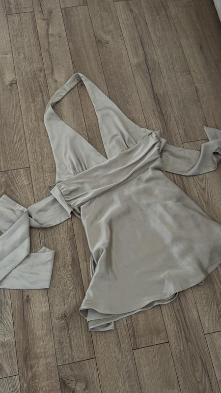 Новое сатиновое мини-платье Зара. Стильный фасон с глубоким V-образным вырезом и открытой спинкой. Широкие завязки образуют бант на спинке, добавляют акцент на талию и красиво подчеркивают фигуру. Легкая приятная ткань. Состояние: новая, с биркой Размер: по набору ХL, замер сделают Длина: мини Цвет: бежевая Материал: сатин Если вынимут вопрос, пишут в личные сообщения