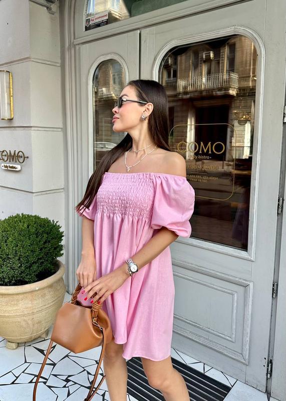 💕Сукня Кольори: - Малина - Барбі - Зелений - Білий (не просвічує) - Чорний ➡️Розміри: 42-44, 44-46 ➡️Тканина: льон (натуральна тканина, літом не парить) 🍹Довжина 84см 💸Ціна:500 грн