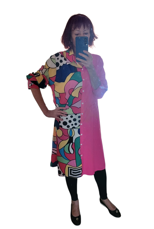 Пог 54,длина 105, я носила на рост 167,размер M, приобрела красивый.Оверсайз,йдет на размеры с 38 по 44