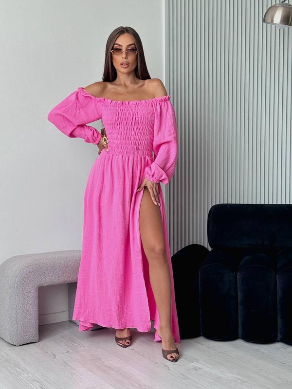 Реал 🫶 ❤️Сукня з натуральної тканини Мод:765 Тканина:Муслін (100% бавовна) Розмір:42-44;46-48 Кольори: ніжно рожевий,рожевий,беж,білий ✔️Підкреслить твою талію ✔️Добре тримає груди ✔️ Ефектний розріз 42-44 ОГ-до 97 ОТ- до 71 Стегна-будь-які 46-48 ОГ-до 103 ОТ- до 80 Стегна-будь-які Повна довжина від плеча -139 см Зріст моделі -168
