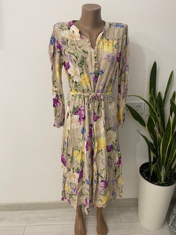 Сукня Reserved 100% віскоза Довжина 115 см Рукавчик довгий 56( можна підтягувати) Пог 54-55 см Пот 51 см в вільно у виді. Затягується на завʼязку