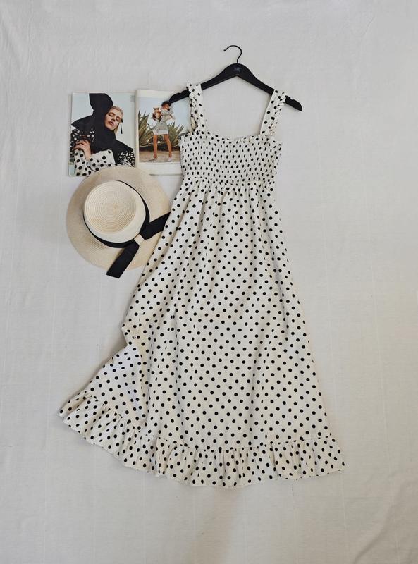 🌿платье в горох от Zara с резинкой на груди, ткань 60% вискоза, 30% коттон, 10% лён Размер:XS Замеры:ПОГ 35 см, ПОТ 30 см, длина 120 см