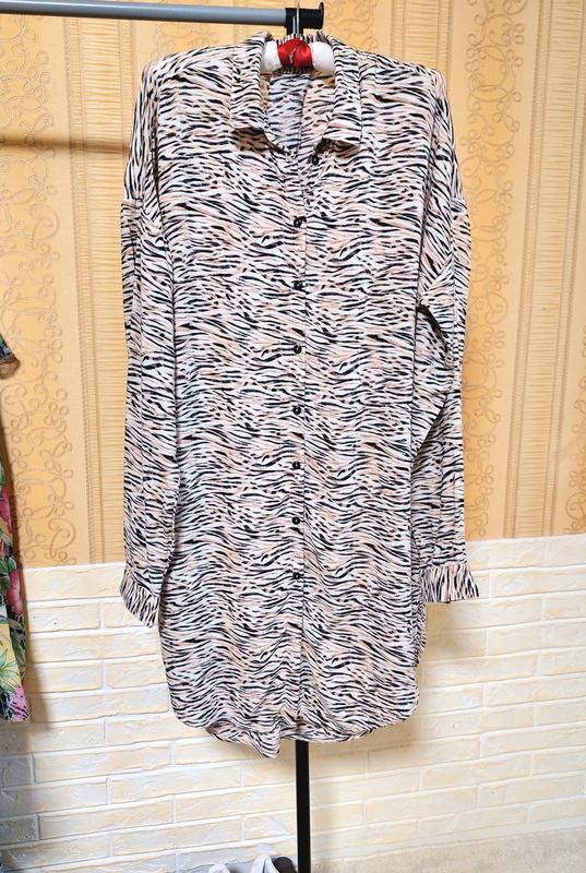 Суперова, свободного кроя, легкая, летняя, в анималистичный принт платье. Спереди на пуговицах, линия плеча спущена, по бокам скругленные вырезы, моделька оверсайз. Ткань шикарная, нежная, мягкая, очень приятная на ощупь, идеальный вариант для летнего сезона (парит не будет). Длина 98см, пог 59см, пот 57см, пост 59см, рукав от горловины 82см.