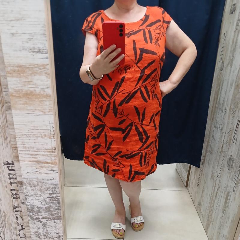 Платье из льна в растительный принт. Имеет карманы, по бокам вставки из трикотажа. Указан размер М. Одето на рост 155 см укр 48/50 Состояние новой вещи