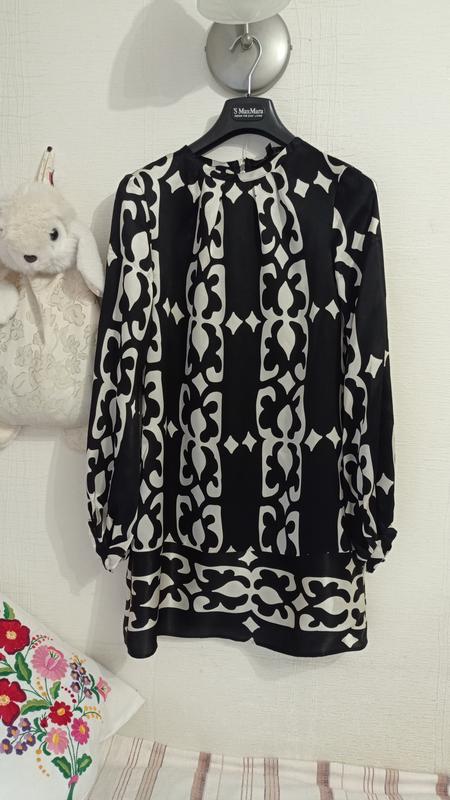 Платье очень красивое и интересное, я бы даже сказала, что дизайнерское. Легесенкиф, но немрозорой шелк, шелк-атлас, красиво скомбированный низ, выложенная ткань, см внимательно фото. Но изюминкой платья является рукава, сверху узкие и расширенные вниз, как-то очень интересно покроены, выложила и сфокусировалась. Платье было бы в состоянии новой, чистый, благоухающий, чтобы не растяжки ткани на сгибе рукавов, у подмышек. На вид не влияет, но факт) Судьбы, рукава сверху узкие, поэтому это следует учитывать при покупке. Размер - S, не более. Я бы даже консультировала на XS. Плечи - 38, подмышками - 47, талия - 44, бедра - 49. Рукав - 57, длина - 85.