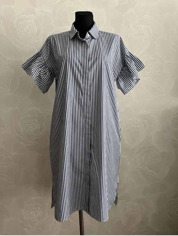 Гарнесенька сукня від люксового італійського бренду. Хрустка бавовна,бічні кишені,цікаві рукави,красива вишивка. Стан нової речі. Довжина 99 Пог 53 Поб 56