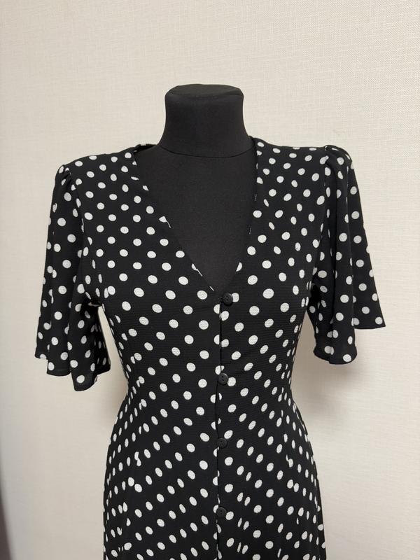 Розпродаж моїх товарів 1=2 🎁 При покупці 1 товару, 2 дешевший у подарунок 💝 Жіноче плаття бренду Asos. Стан дуже хороший, де-не-де є дрібненькі катишки, видно лише якщо розглядати зблизька, прибираються машинкою. Одягнуто на манекен з параметрами 82-62-85. Дуже красиво підкреслює фігуру, візуально видовжує зріст і гарно лягає по талії. Гарні рукави. Тканина злегка тягнеться, обхват регулюється завʼязкою. Думаю підійде найкраще до параметрів 90-70-95 і менше.