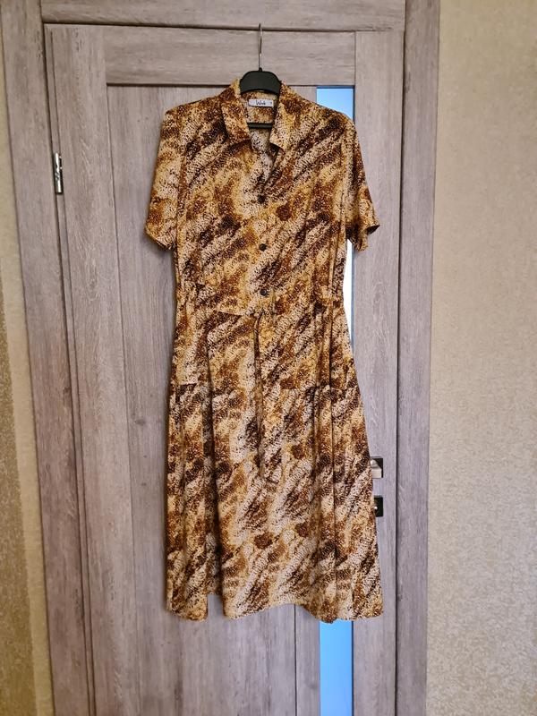 Нове плаття-сорочка вітчизняного виробника Week. Віскоза 80%, поліестр 15%, лайкра 5%. Дуже легеньке. Пог 50 см, Поб 49 см, довжина 115 см. Зрізала бумажняну етикетку, тому віддаю за копійки. Під пасик.