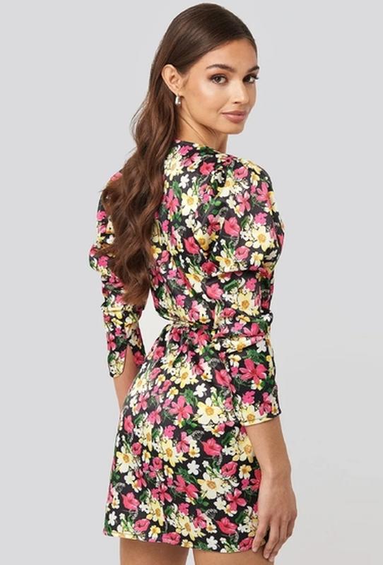 Просьба через кнопку КУПИТЬ оформлять после договоренности Стильное платье в цветочный принт NA-KD. Модель по фигуре, есть потайная молния. Длинный объемный рукав, на талии отрезное. Размер указан 36, можно на больше.
