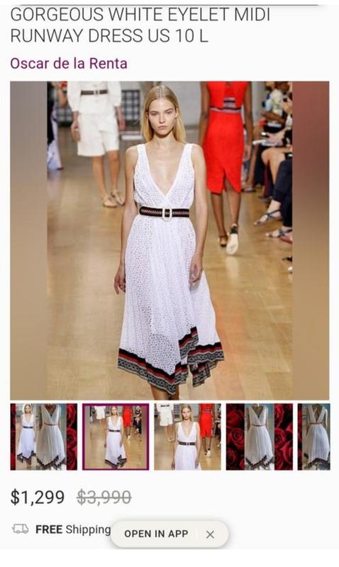 Oscar de l Renta подиумное платье 2017 миди из прошвы. v-образный вырез спереди и сзади, платье из подкладки из хлопка, асимметричный низ, застежка спереди на крючки, контрастная вышивка снизу, размер 4, состояние новой абсолютно