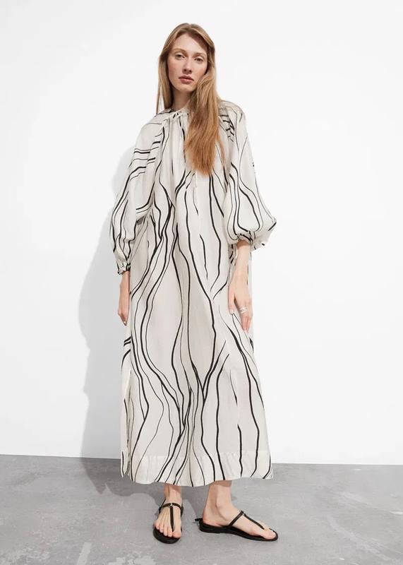 Сукня від &Other stories, з поточних колекцій, розмір вказано Л. Неймовірна ! Легка та невагома. Рукав ругулюється, може бути прямий або як на моделі, по бокам розрізи. Сток, як нова ! Торгу немає! Склад: 87% ліоцел, 13% поліамід. Заміри: Довжина по спині 131-132 см; Рукав від горловини 74 см; Пог ( від одної подмишки до іншої ) 74 см; Пот 81 см +\-; Поб 88 см +\-; Ширина рукава 22 см + повністю стягується.