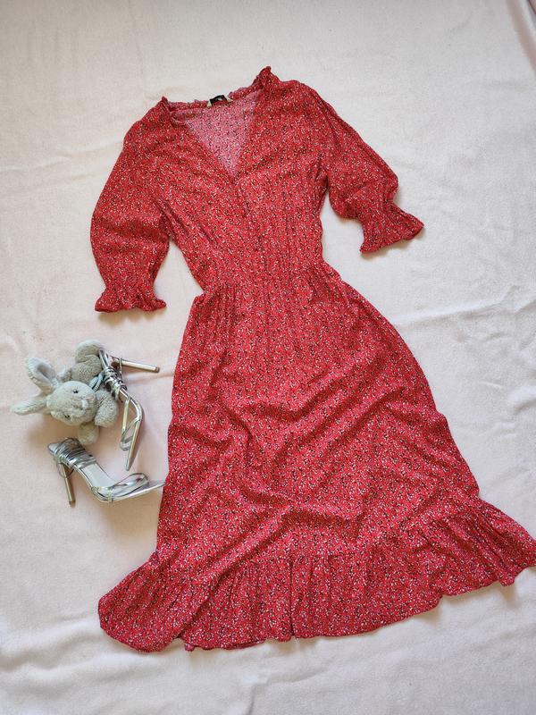 Платье миди р 38 40 М Л 10 12 красное в цветочный принт в цветочек Новая, вискоза Довж 121 см, НОГ52 см, НОТ 36-48 см резинка, пл41, (рук 42 см в ширину і 18 см в ширину)