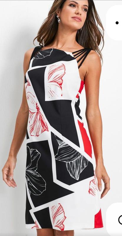 ПОГ-55, ПОБ-63, ДОВЖИНА-97. Платье свободного кроя, фасон трапеция. размер указан 50 евро, но маломерит. скорее 44-46 евро. Интересные бретельки, сзади маленький разрез. Платье привлекает внимание интересным, ярким принтом, и за счет свободного кроя вдохновляет нюансы фигуры. Лучше сядет на рост выше 163см. Ткань -полиэстер/эластан, держит форму, не светится. На жару не подойдет., до +25/27. Майже не минеться!!! питомнику заказывать на Розетку, чтобы была возможность примерить!