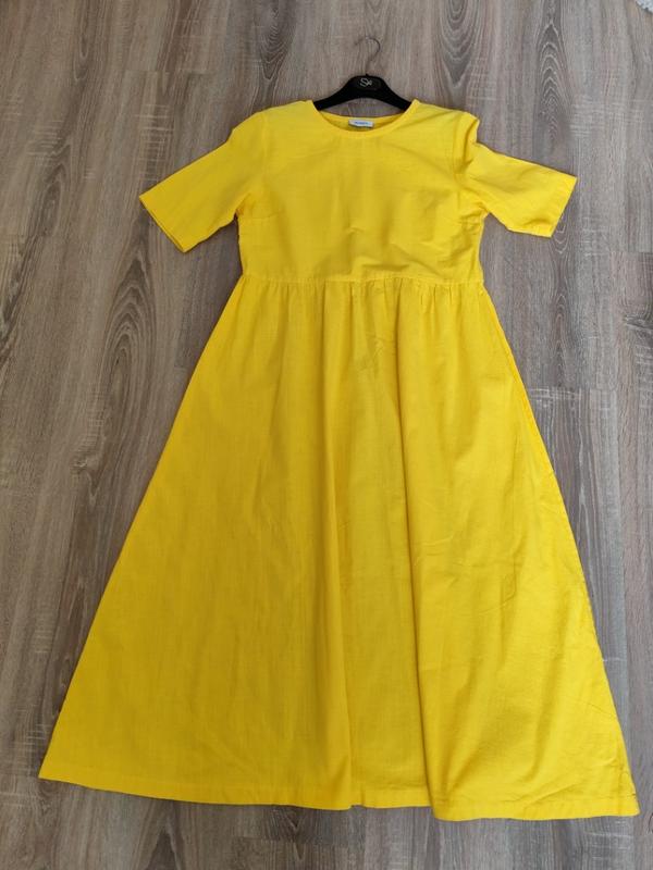 Платье линия Max Mara, лен/ хлопок в новом состоянии, цвет как на первом фото, насыщенный желтый. без подкладки, не светится, ткань не тянется размер М длина 120 грудь 48 талия завышенная, 46 бедра свободные